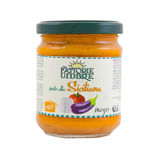 Fattorie UmbreBring the authentic taste of Sicily to your kitchen with Fattorie Umbre Pesto Siciliana. This vibrant blend combines sweet peppers, roasted eggplan...