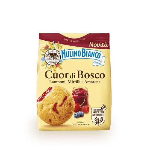 Mulino Bianco BarillaIndulge in the rich taste of Mulino Bianco Cuor di Bosco Cookies – a delightful Italian biscuit with a heart of wild berry filling. These golden co...
