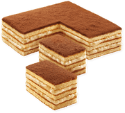Tiramisù, a pleasure to be shared: velvety Mascarpone cream filling wrapped in a chocolate coated sponge cake.