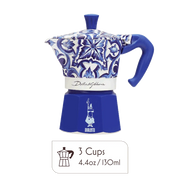The Bialetti Moka Dolce & Gabbana Blu Mediterraneo Stovetop Espresso Maker combines iconic Italian coffee tradition with high-fashion design. Featuring the legendary Bialetti Moka silhouette, this special edition is adorned with vibrant blue and white patterns inspired by the Mediterranean coast and traditional Italian ceramics.