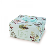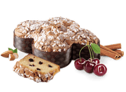 Cake made by means of the natural fermentation of sour dough, with an irregular oval shape, reminiscent of a dove. The cake itself is especially soft owing to the use of fresh milk, butter and cream. It is light in texture and enriched with little pieces of Cherry, Cinnamon powder and natural Mananara del Madagascar* vanilla. The loaf is covered with icing and decorated with granulated sugar and almonds.