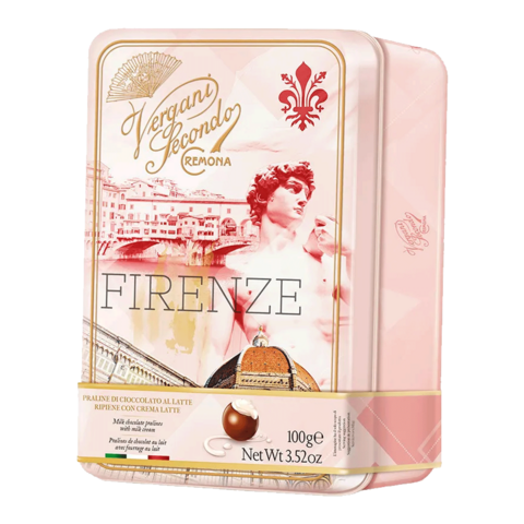 View full detailsVergani Firenze Tin, Milk Chocolate Pralines w/ Milk Cream, 3.52 oz | 100g