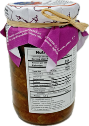 Ingredients: Eggplant 38%, Pleed Tomato, Onion, CELERY, Extra virgin olive oil, Green Olives, Tomato paste, Sugar,