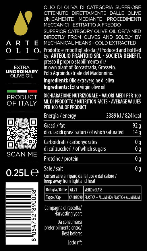 ArteOlioExperience the essence of Italian craftsmanship with ArteOlio Prezioso, a superior 100% Italian Extra Virgin Olive Oil, cold-pressed to preserve pu...